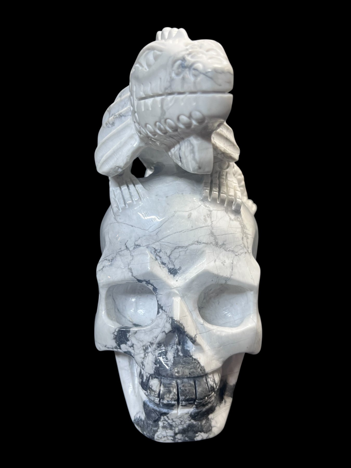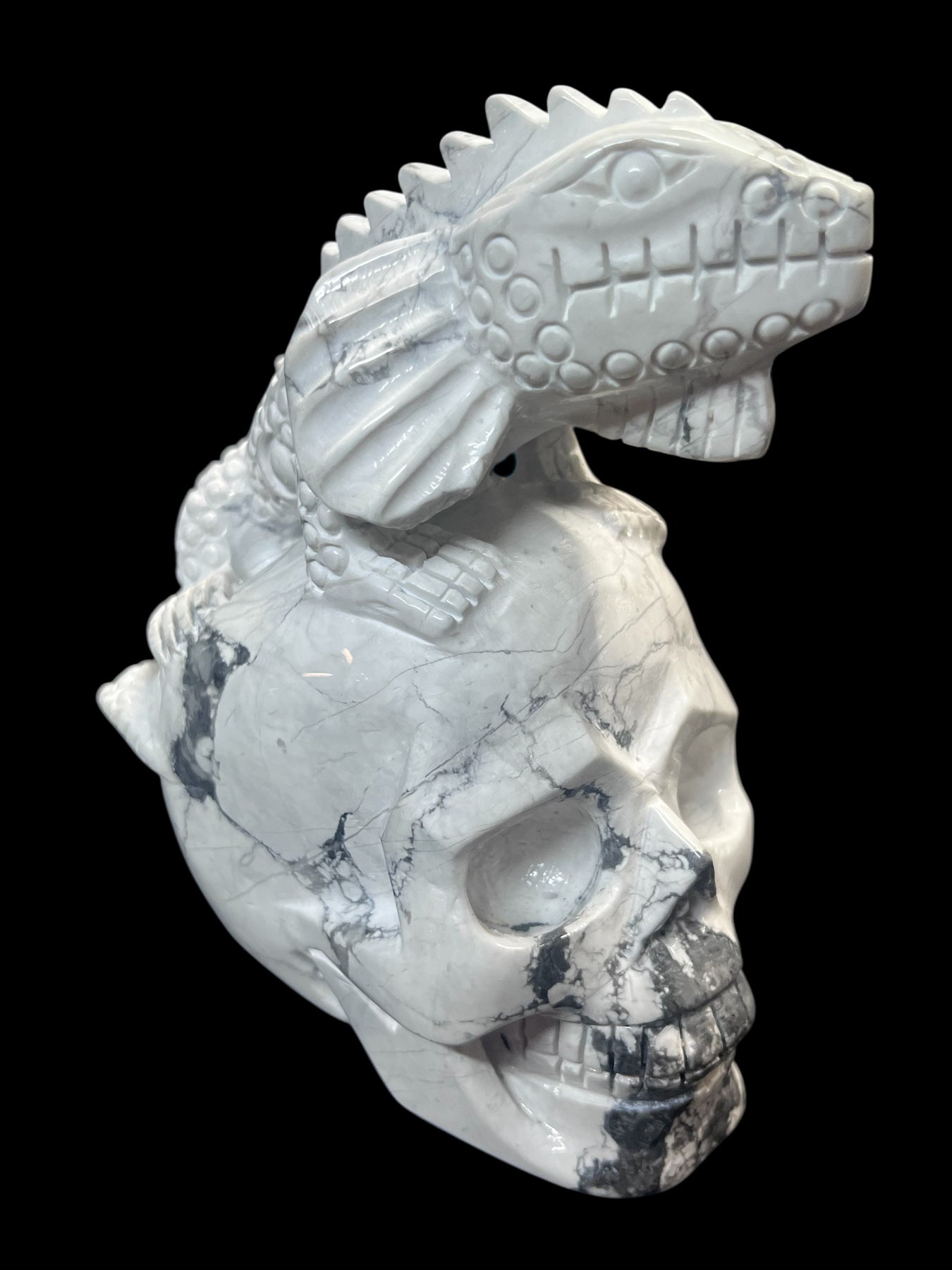 Howlite Lizard Skull Carving approximately 6”x4” carving