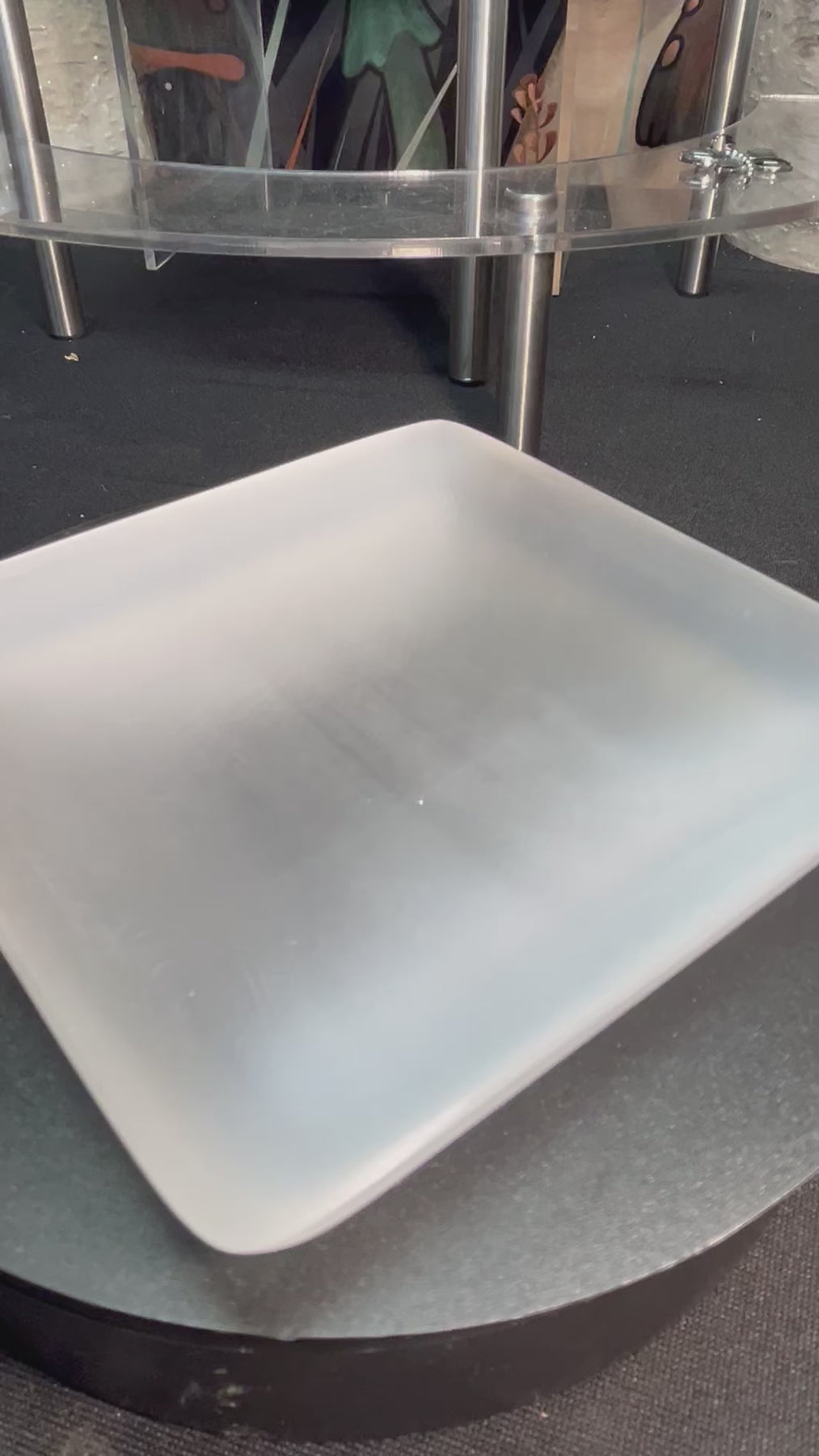 Satin Spar/Selenite Square Bowl approximately 4 inches
