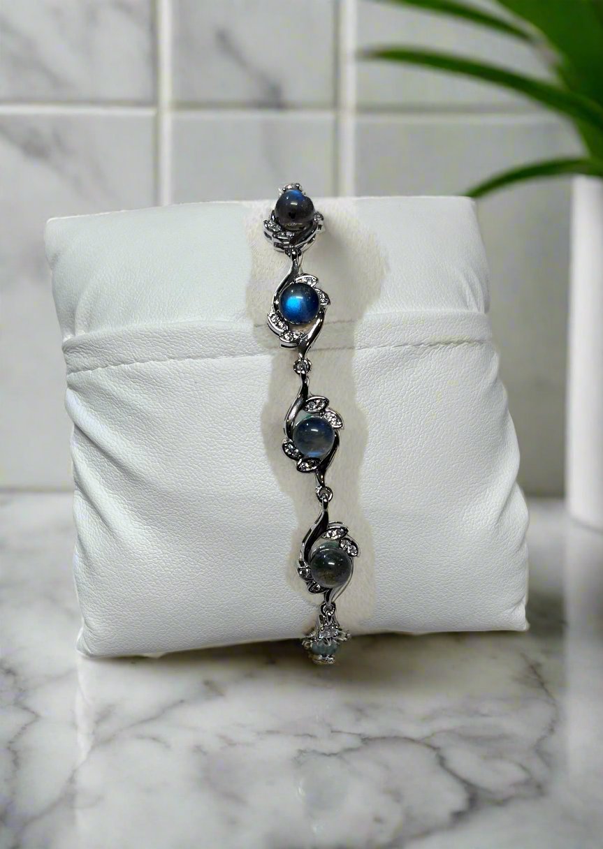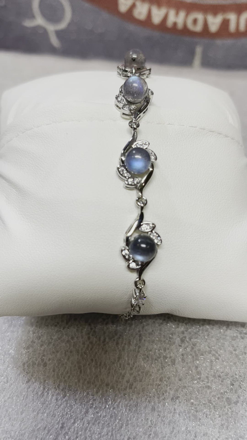 Super flashy and elegant! Gorgeous adjustable blue flash moonstone bracelet!
