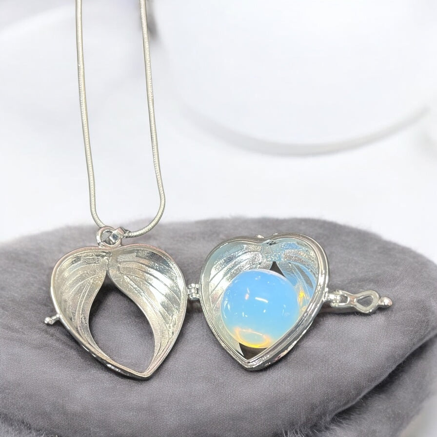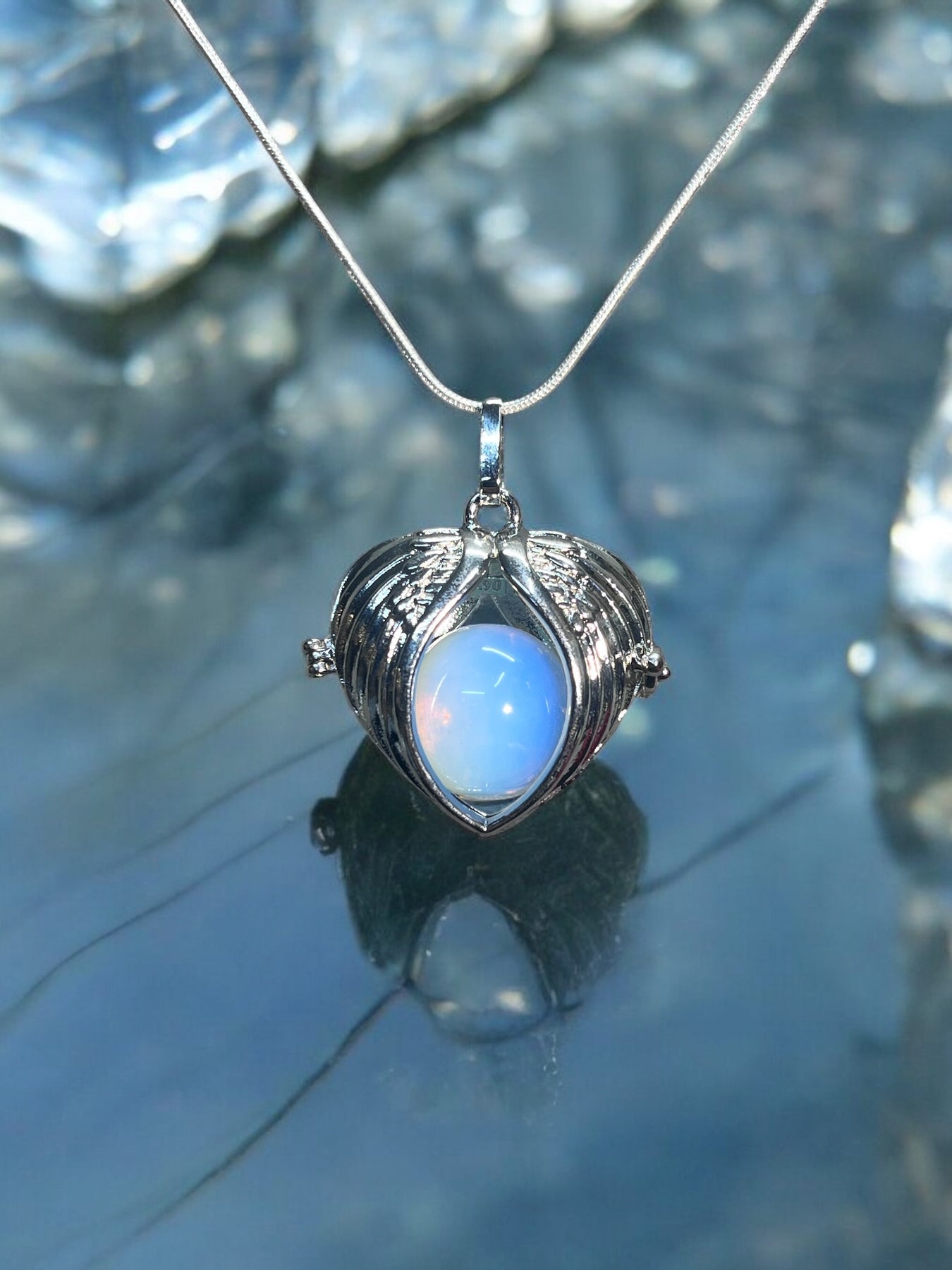 Presenting the exquisite Angel Wing Locket Necklace, featuring a striking Opalite stone that captivates with its rich violet hue and soothing energy. This enchanting locket is thoughtfully designed to open, offering the delightful option to interchange stones, allowing you to personalize your accessory and express your unique style effortlessly. Meticulously crafted from high-quality .925 sterling silver, this necklace boasts not only remarkable durability but also a lustrous shine that enhances its timeless appeal. The pendant, measuring approximately 1.25 inches, showcases intricate angel wing designs that symbolize protection and love, adding a meaningful touch to this elegant piece. The necklace is complemented by a 20-inch chain that drapes beautifully around the neck, making it versatile enough to wear with both casual and formal attire. Whether you’re treating yourself or seeking the perfect gift for a loved one, this locket radiates charm and sophistication, making it an unforgettable addition to any jewelry collection. Embrace the allure of this remarkable piece and let it enhance your everyday elegance.