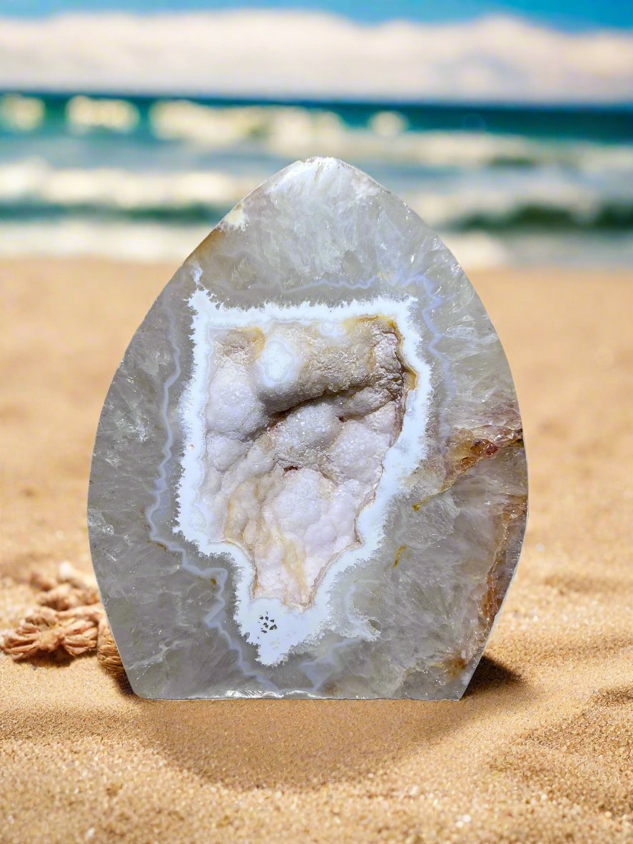 Natural Flower Agate with beautiful transparency and deep druzy cavern. Approximately 1.68lbs and 5”x3.25”x2”