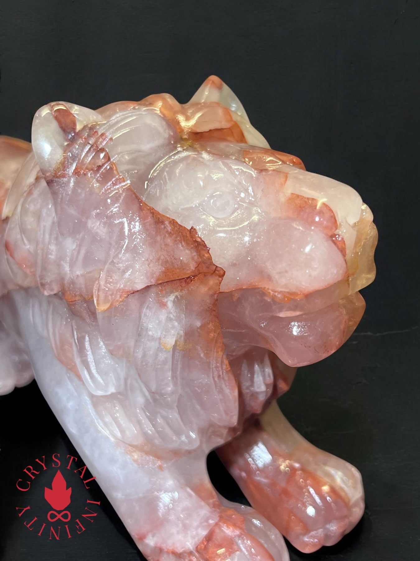 Fire Quartz Lion Statement Carving