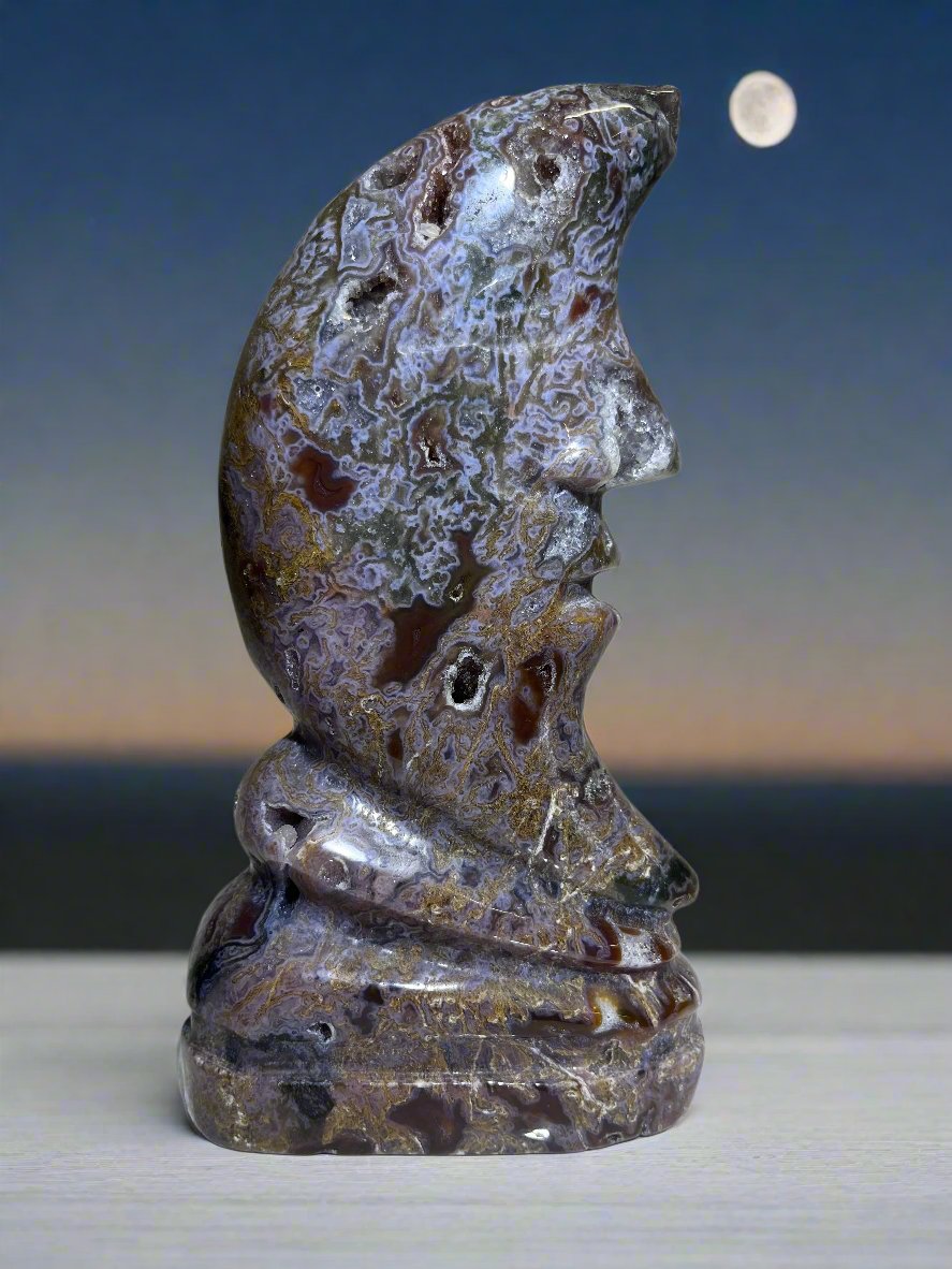 Moss Agate Druzy Moon Face.