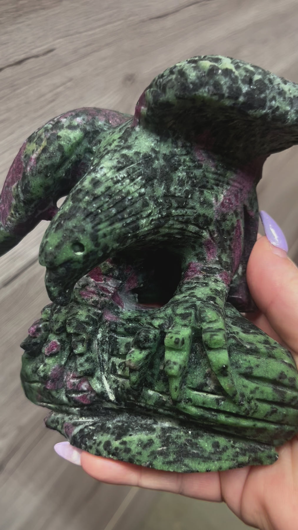 Ruby Zoisite Eagle Carving UV Reactive. Approximately 5.5 inches tall by 8 inches wide and 3 lbs.
