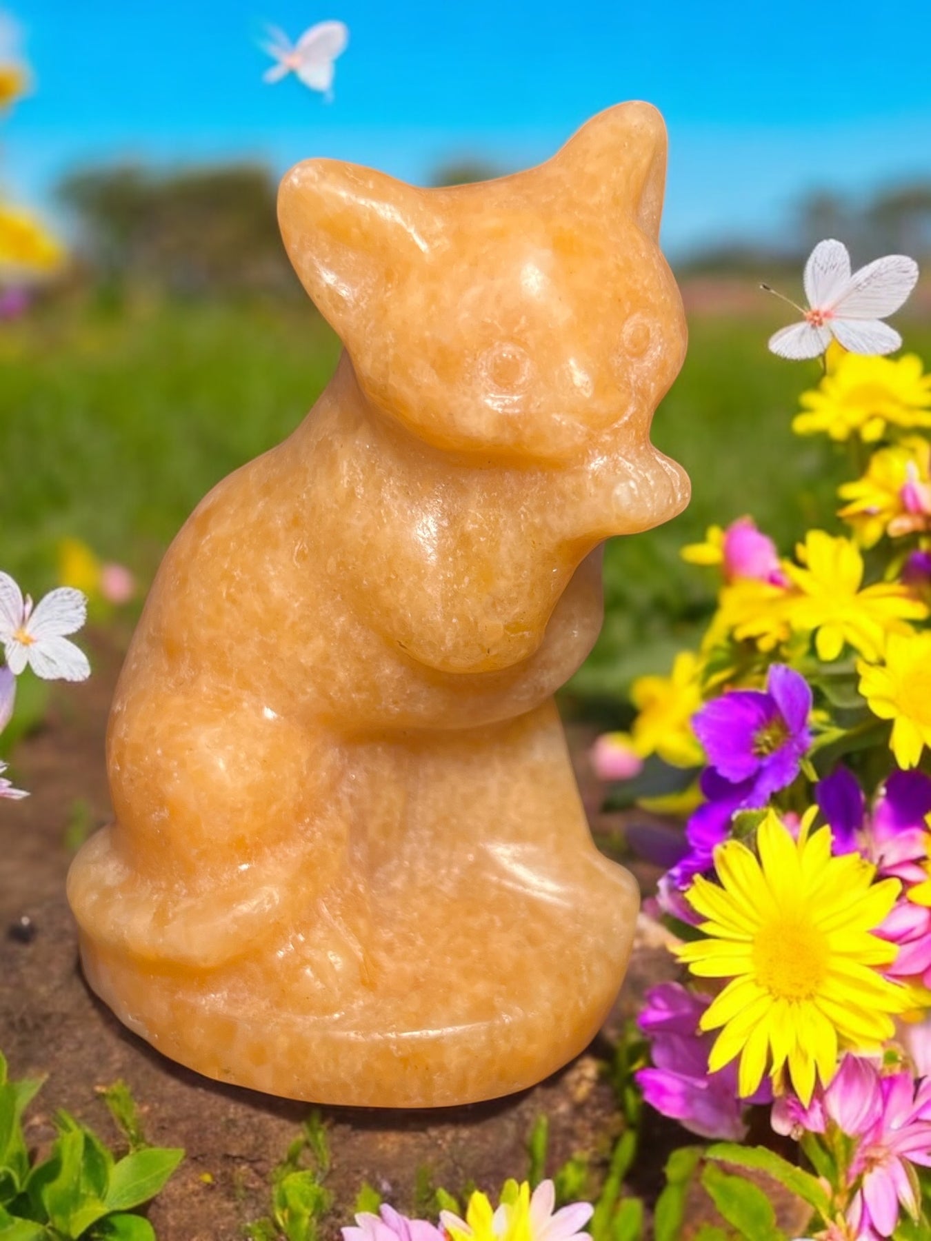 Sunstone Kitty Carving approximately 3.5 inches tall.