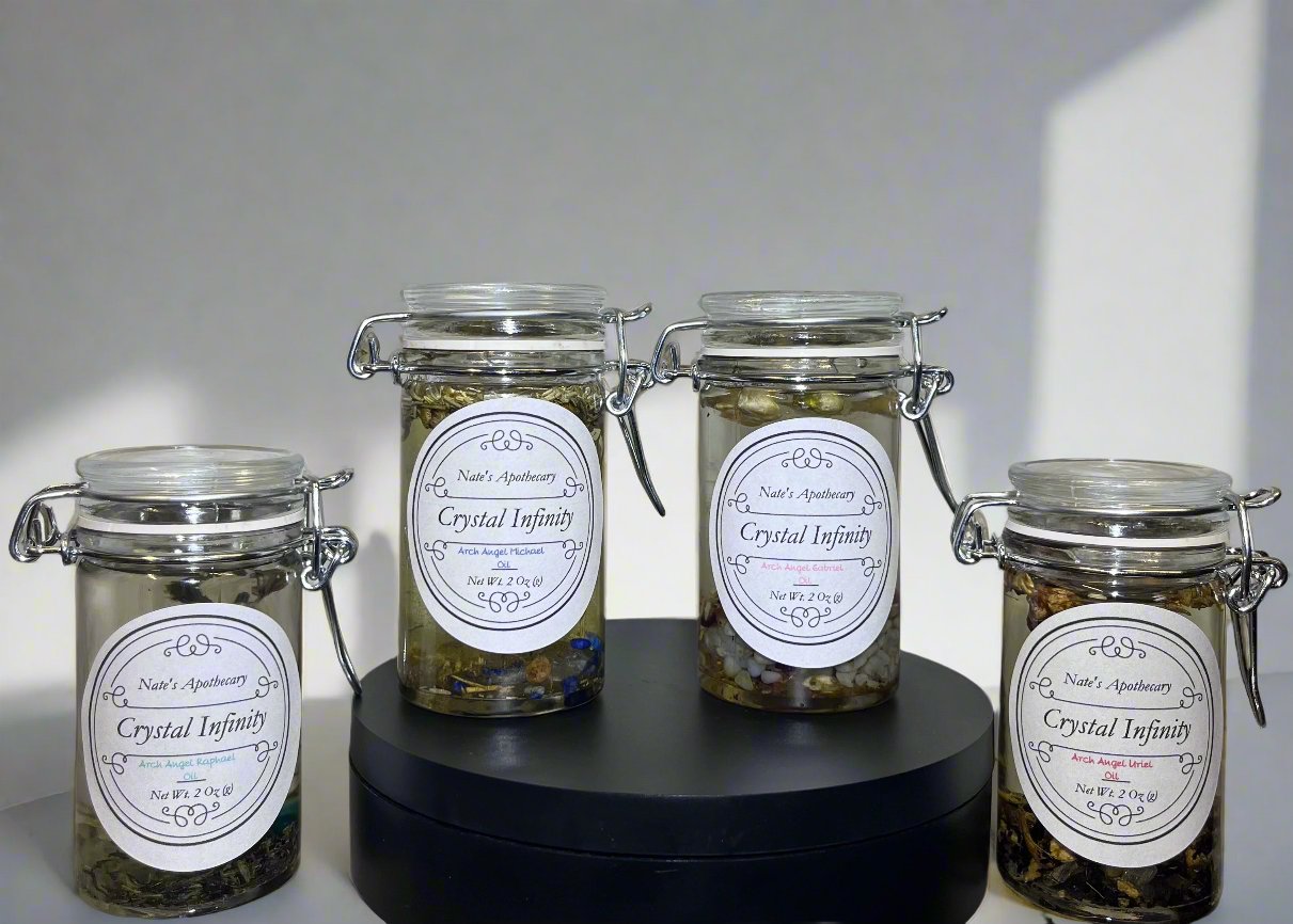 Arch Angel Oils include Arch Angel Michael, Gabriel, Raphael, and Uriel. Each are comprised of their individual herbs, flowers, scents, and crystals.