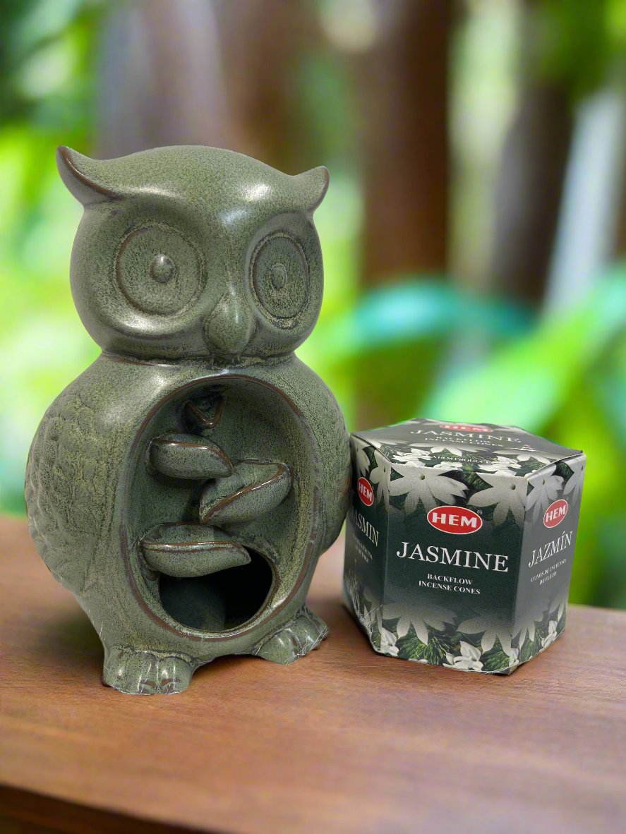 Beautiful Owl Backflo Burner stands over 6” tall! Pairs beautifully with Jasmine Backflo incense!