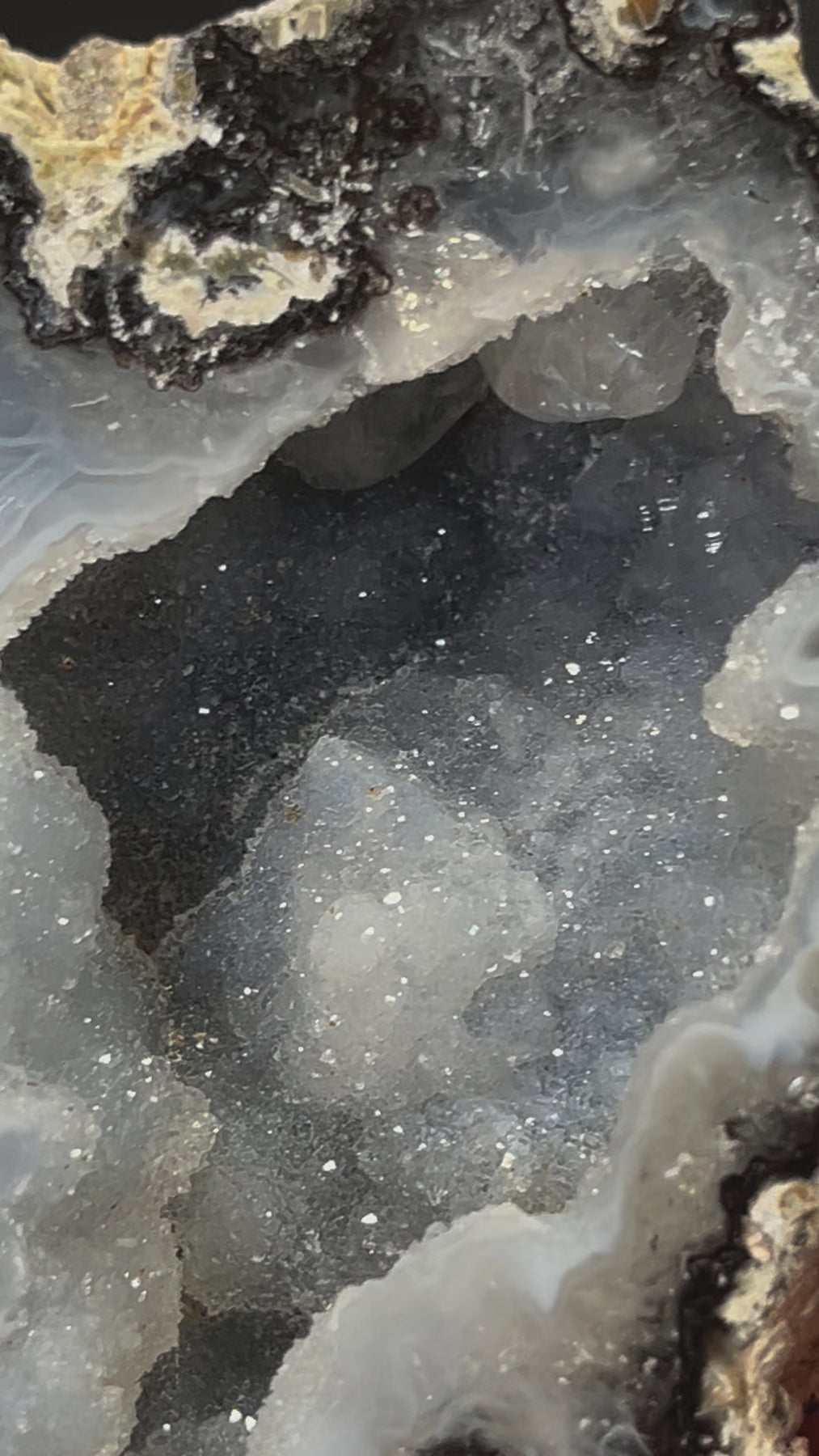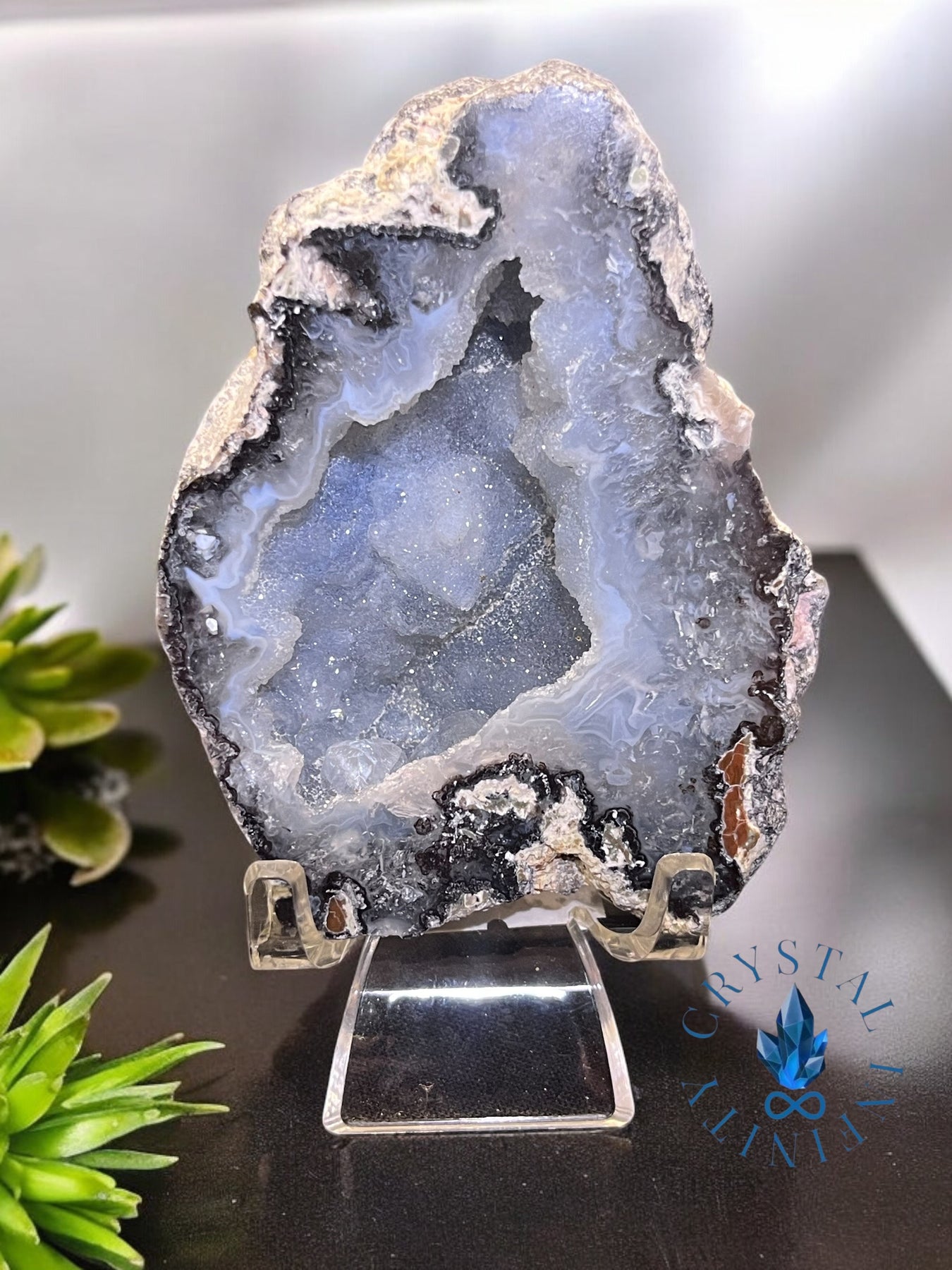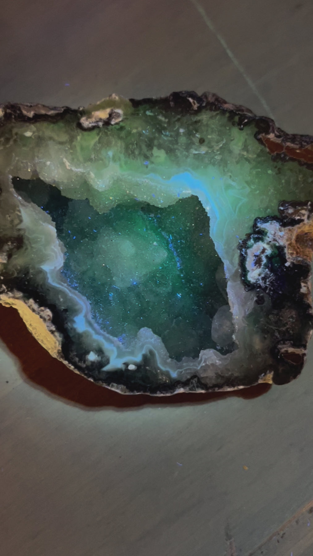 Phosphoric Druzy Agate Geode from Mexico. Approximately 170 grams! UV reactive! Comes with the plastic chair stand for display.