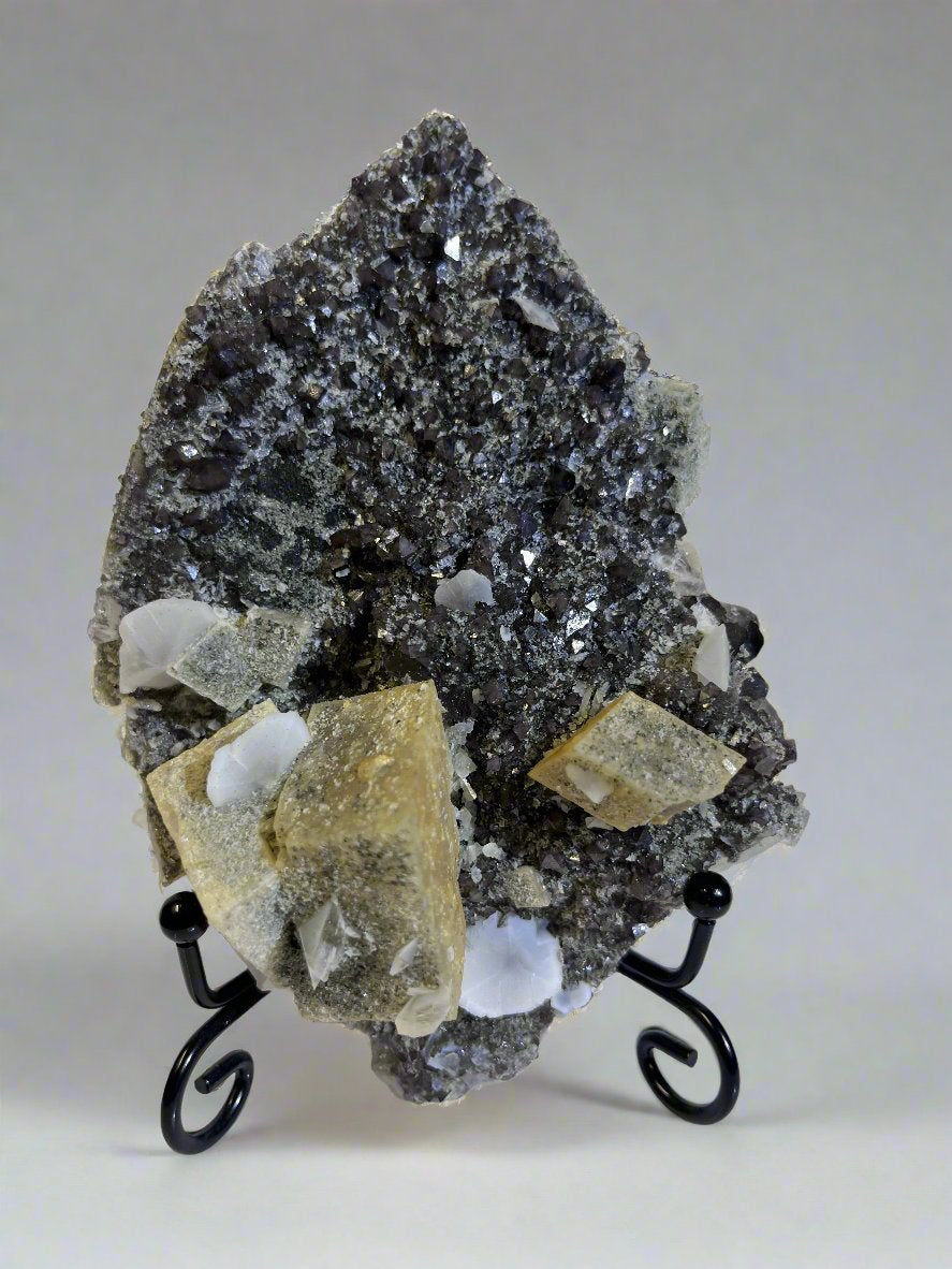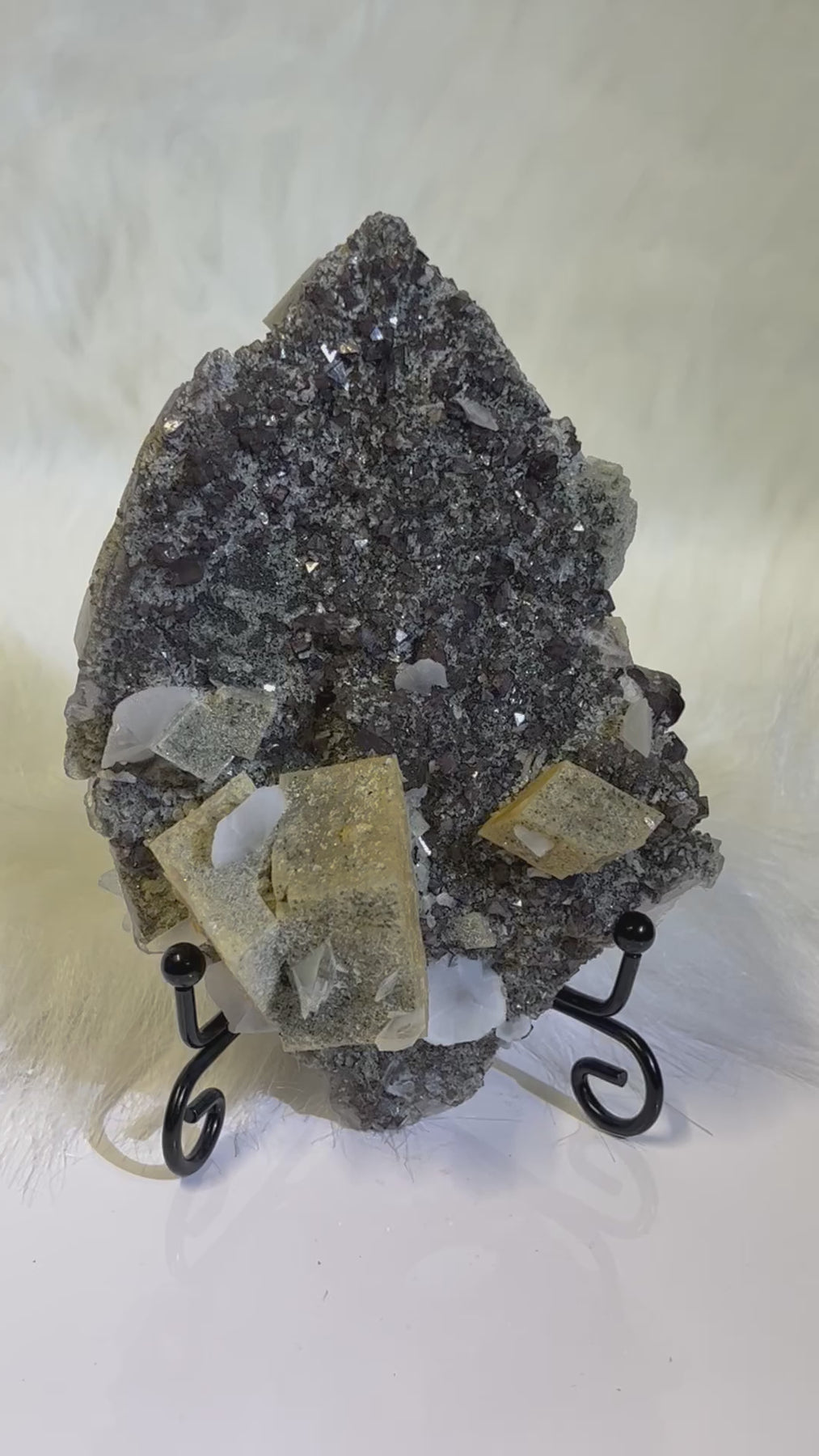 Rare and Unique, High Quality Specimen Tungsten with Cubic Calcite and Flower Mica on Quartz Matrix.