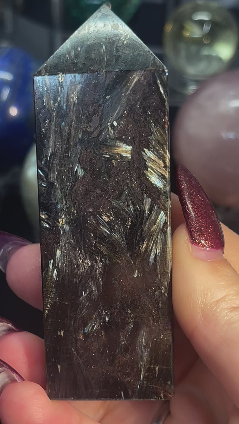 Arfvedsonite is a rare and captivating black crystal that embodies the essence of self-awareness, purpose, and the power of manifestation. Revered as the "Stone of Truth," it invites a deeper understanding of oneself, encouraging clarity and authenticity in every aspect of life.