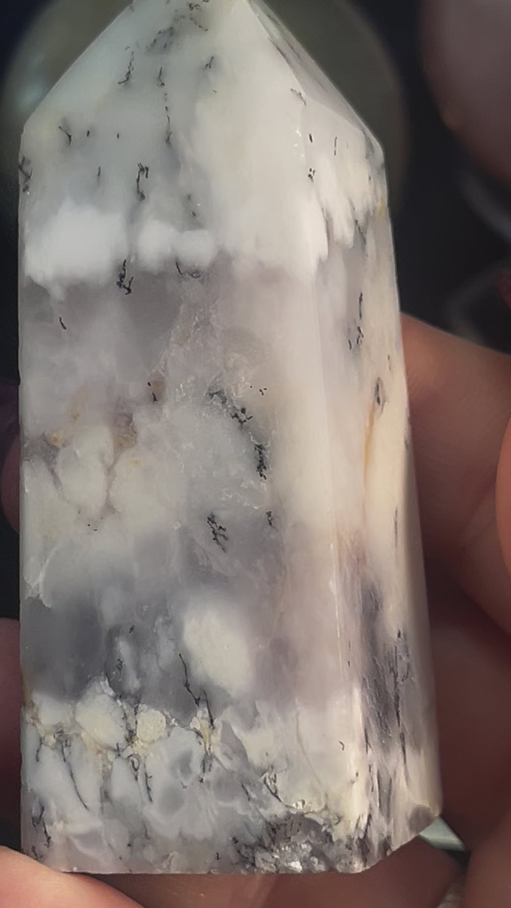 Dendritic Opal Point approximately 3.5 inches and 120 grams.