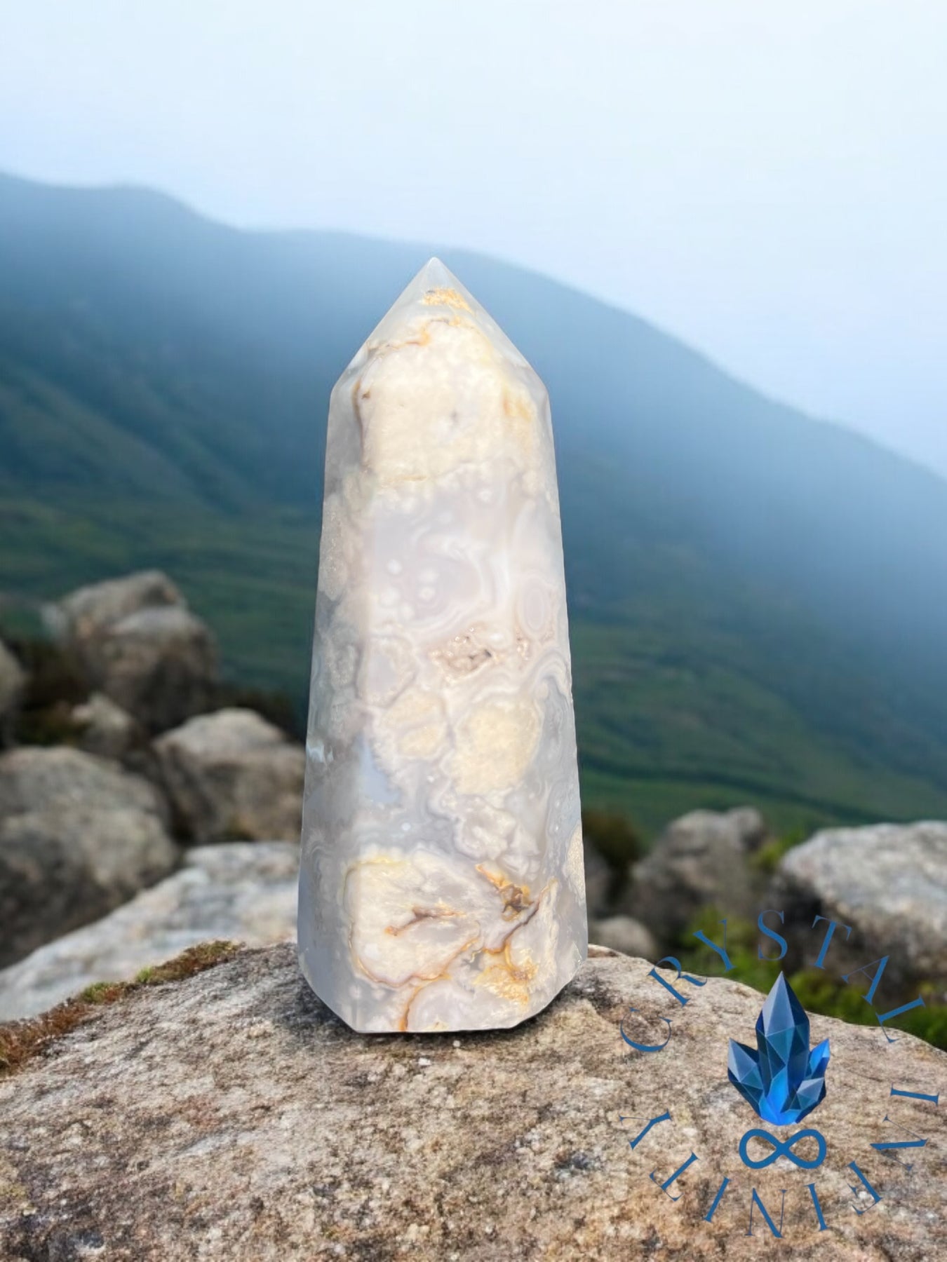 Flower agate is a powerful symbol of new beginnings, healing, and self-love. It is thought to empower individuals to rediscover joy and embrace life fully after overcoming challenging times. Let the calming energy of flower agate guide you on your journey to renewal and happiness.