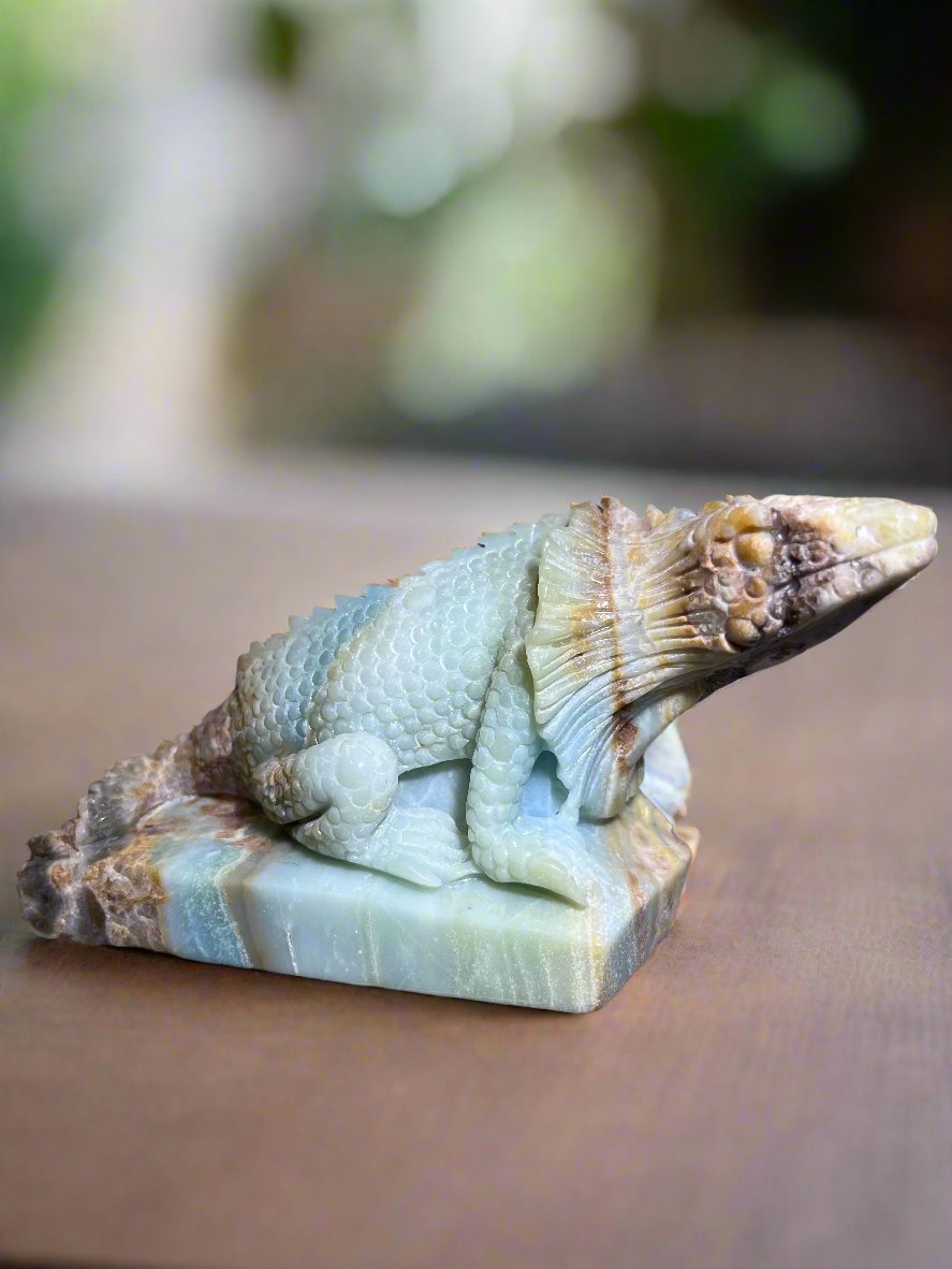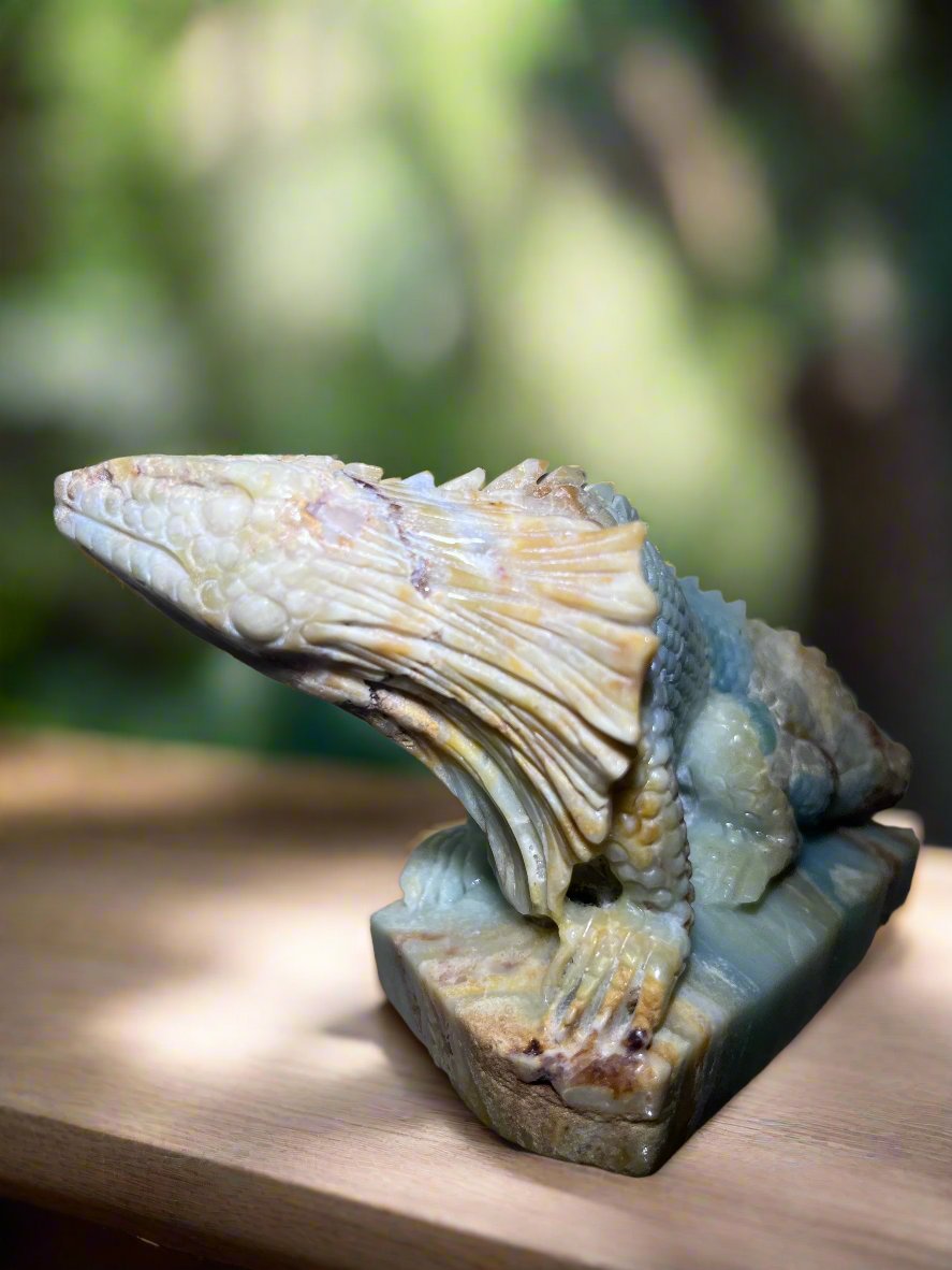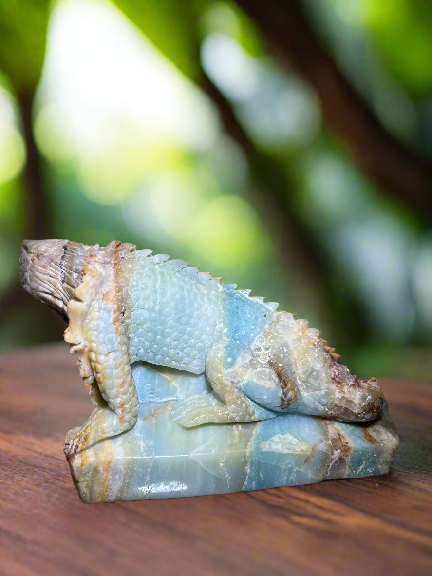 Natural Caribbean Calcite Bearded Dragon weighing .770 lbs and 5.23” long by 2.90” tall.