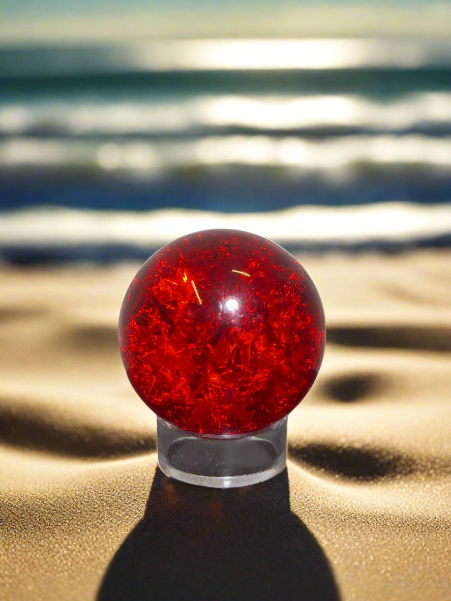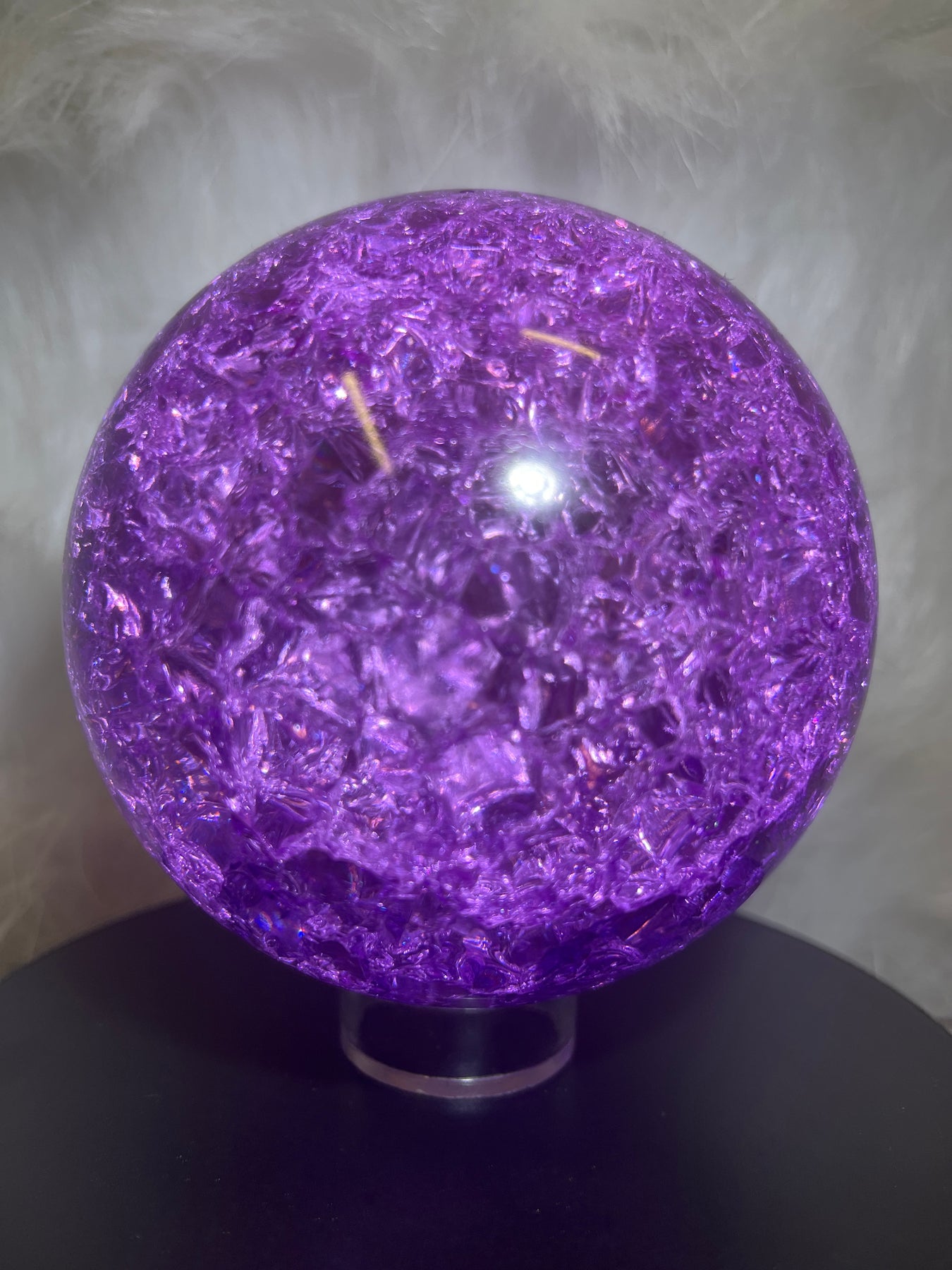 Super flashy with loads of colors that shine from each crackle! Reconstituted quartz crystal that is heated to volcanic temperatures to create these magnificent fractures that shine beautifully!