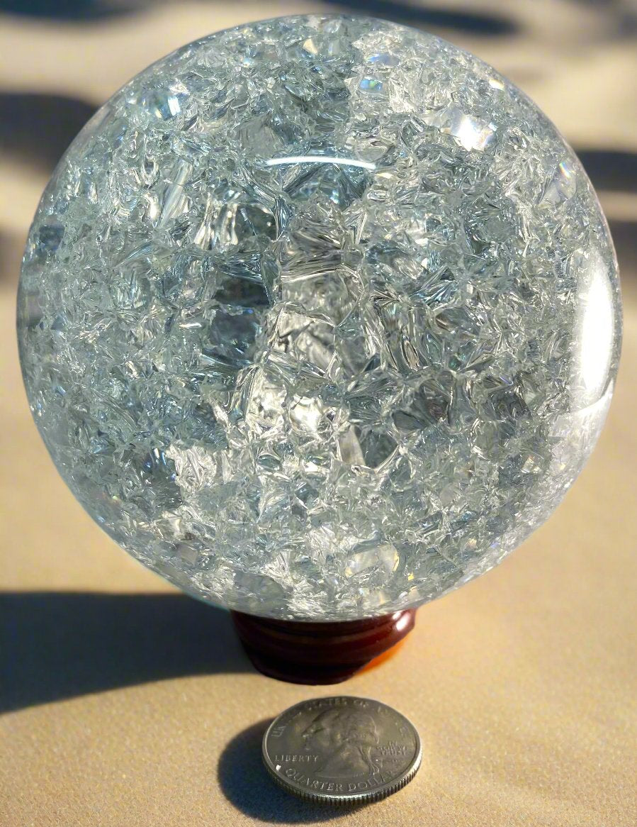 Crackle quartz is said to have many metaphysical properties, including cleansing the aura, balancing chakras, and amplifying intentions. The crackle effect is created by heating the crystal, which symbolizes resilience.