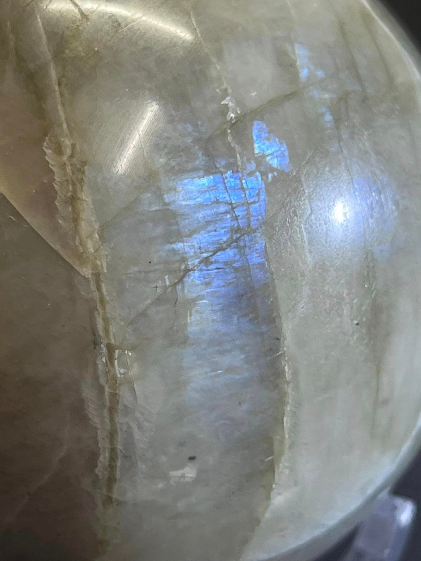 Garnierite also known as Green Moonstone or Green Labradorite is shown here is beautiful blue flash. Approximately 2.54" diameter.