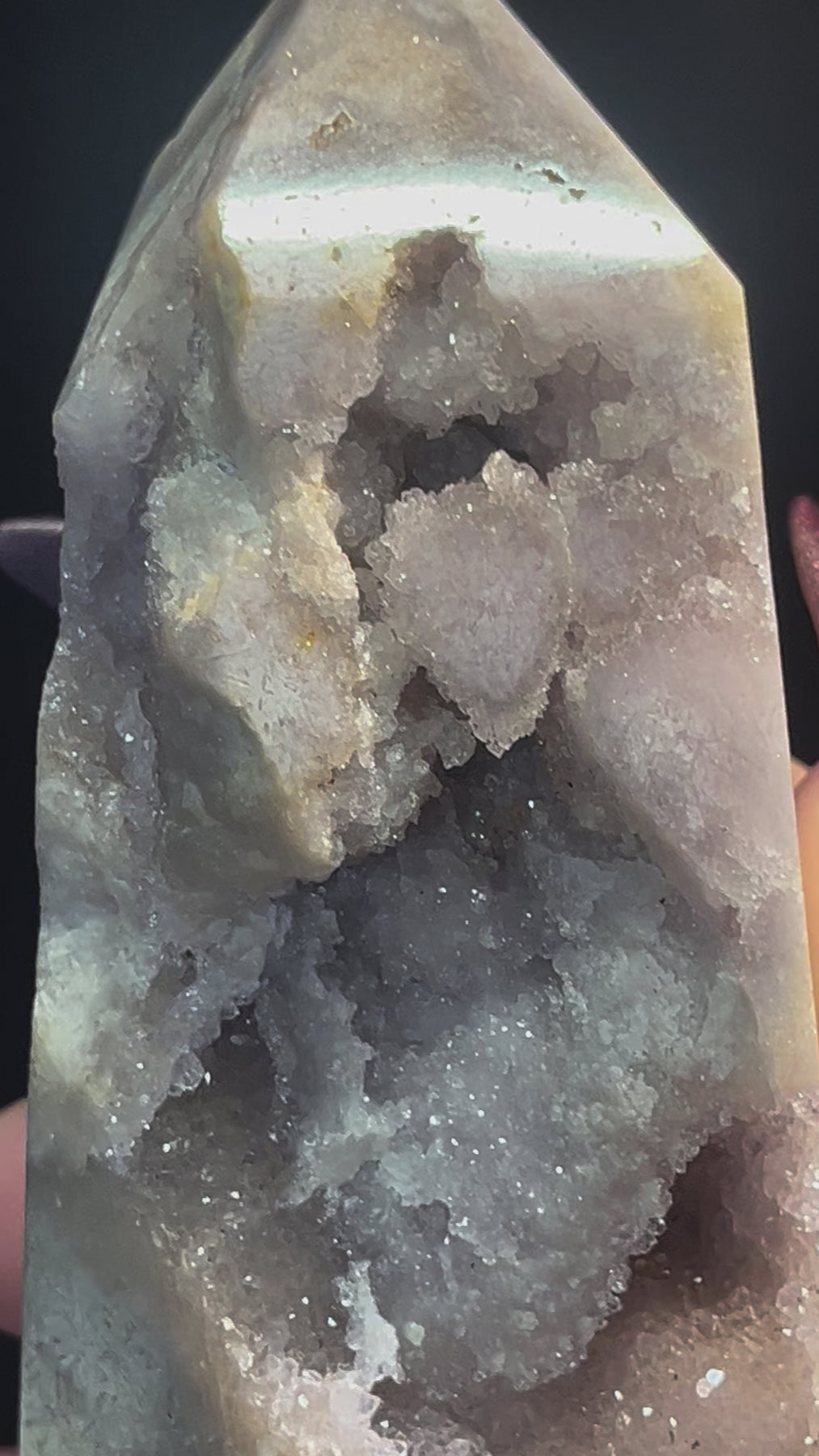 Pink Amethyst Druzy and Flower Agate Tower features beautiful juicy druzies!! Approximately 5.43” tall and 1.01lbs!