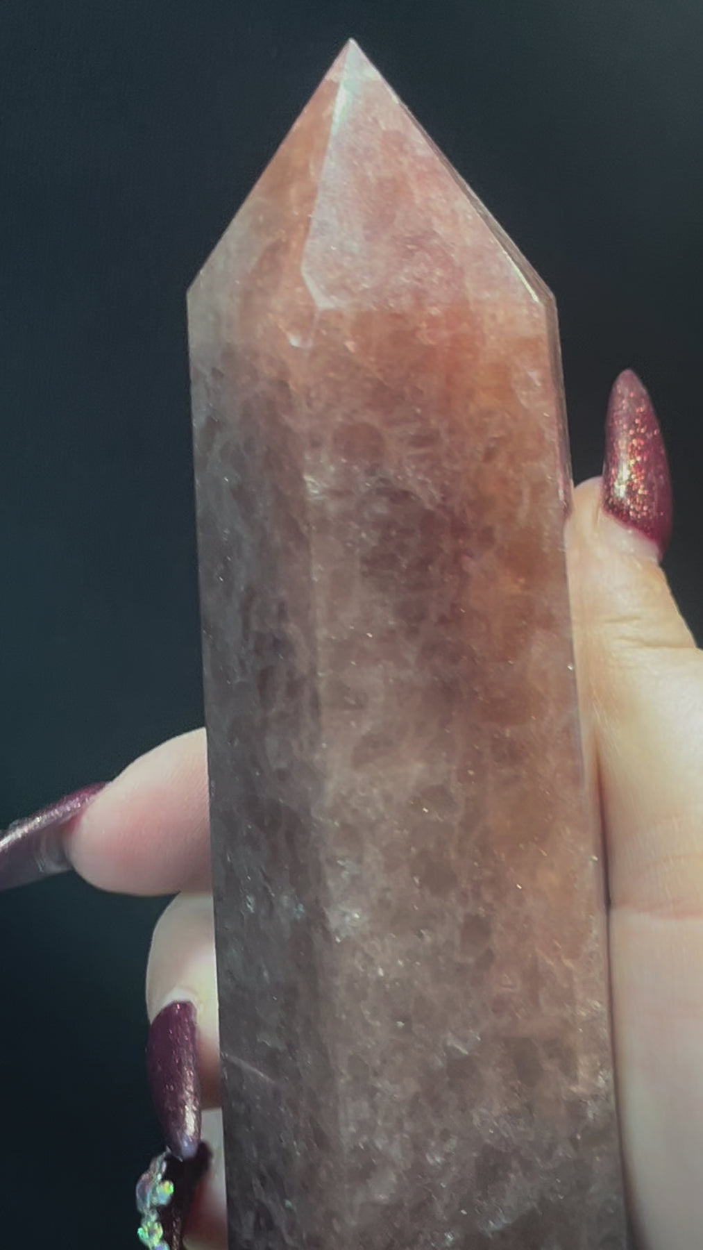 Strawberry Quartz Tower standing approximately 6.75” tall and 1.21lbs!